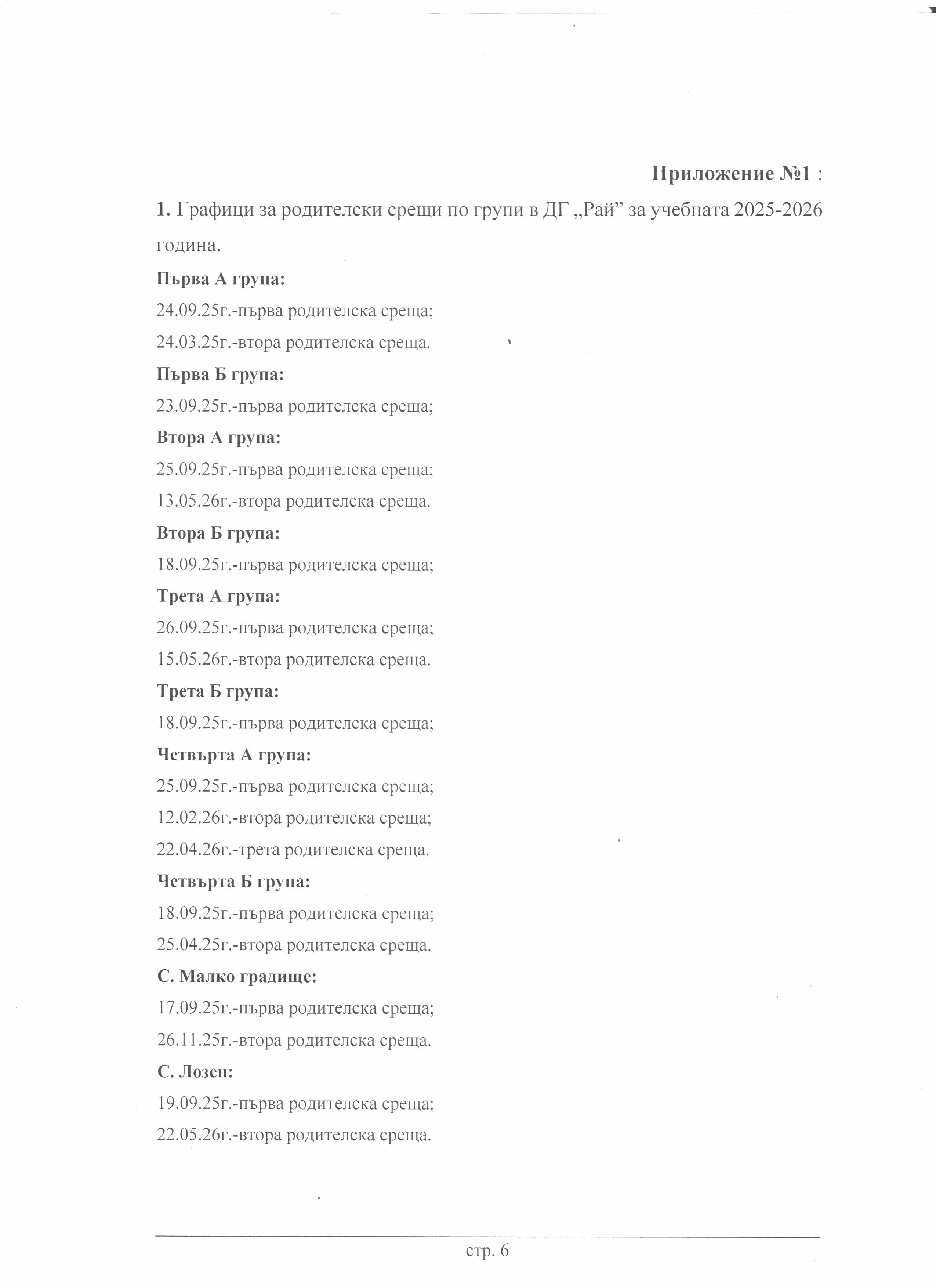 График за родителски срещи по групи за учебната 2025/2026 година